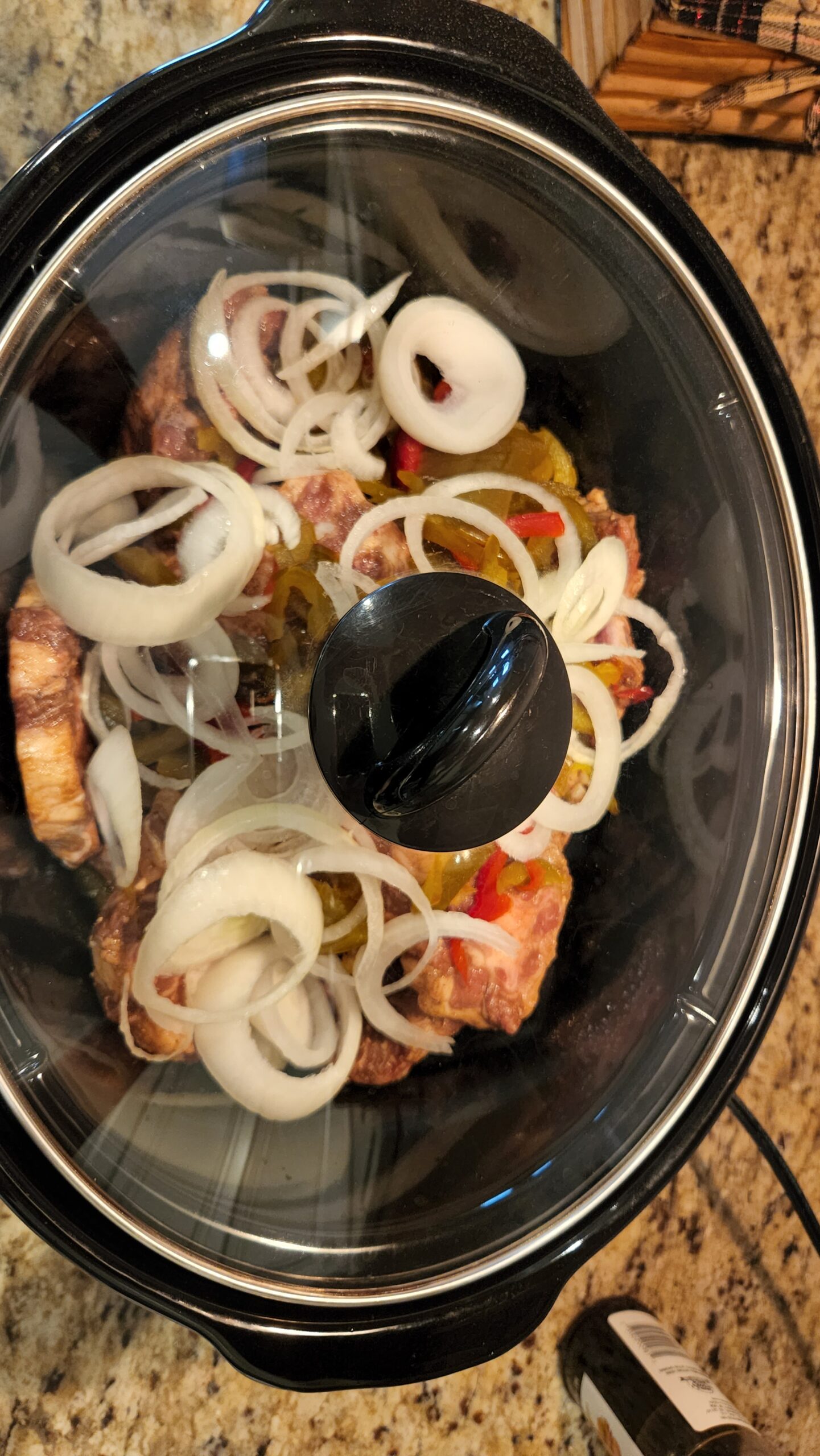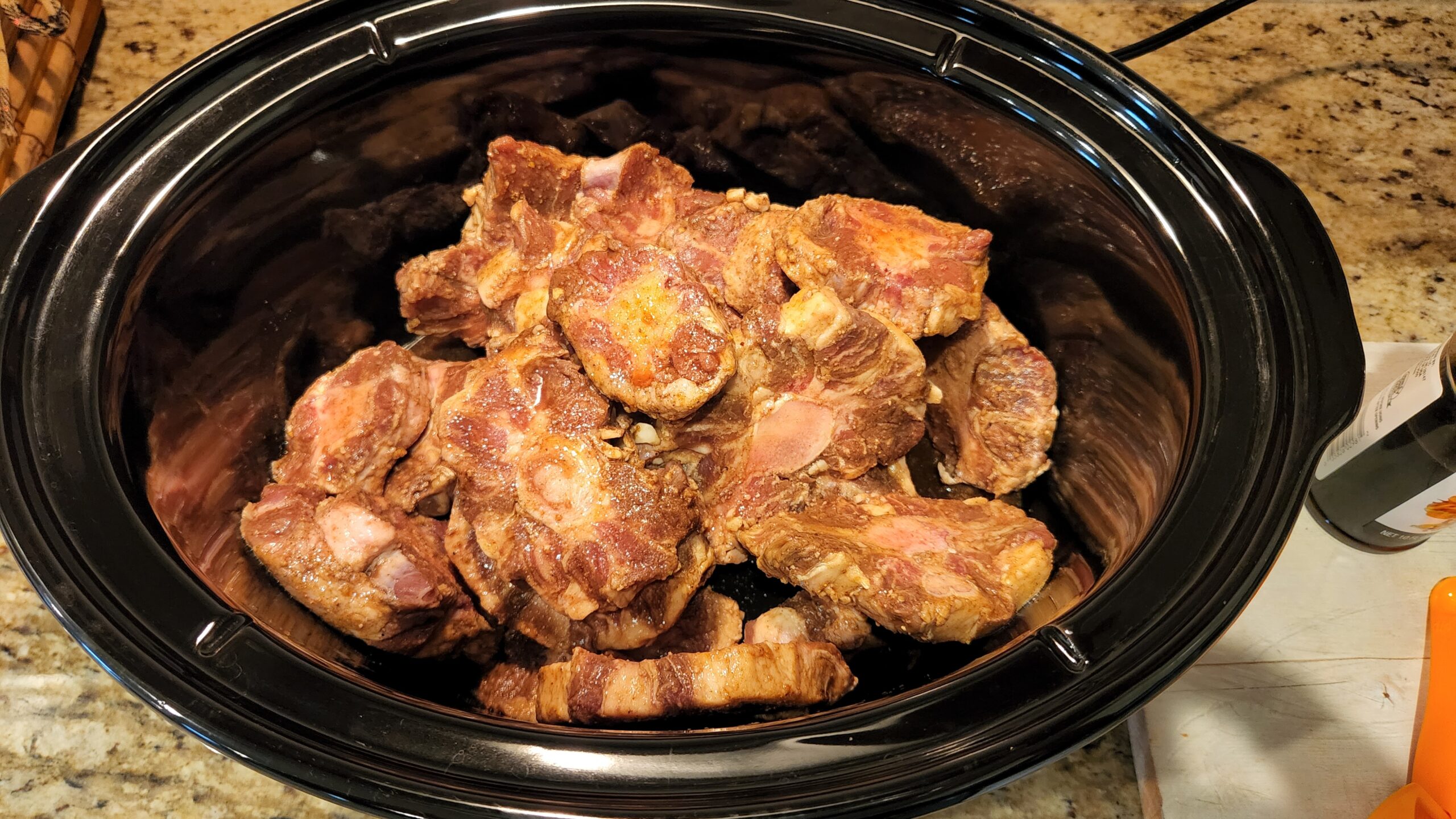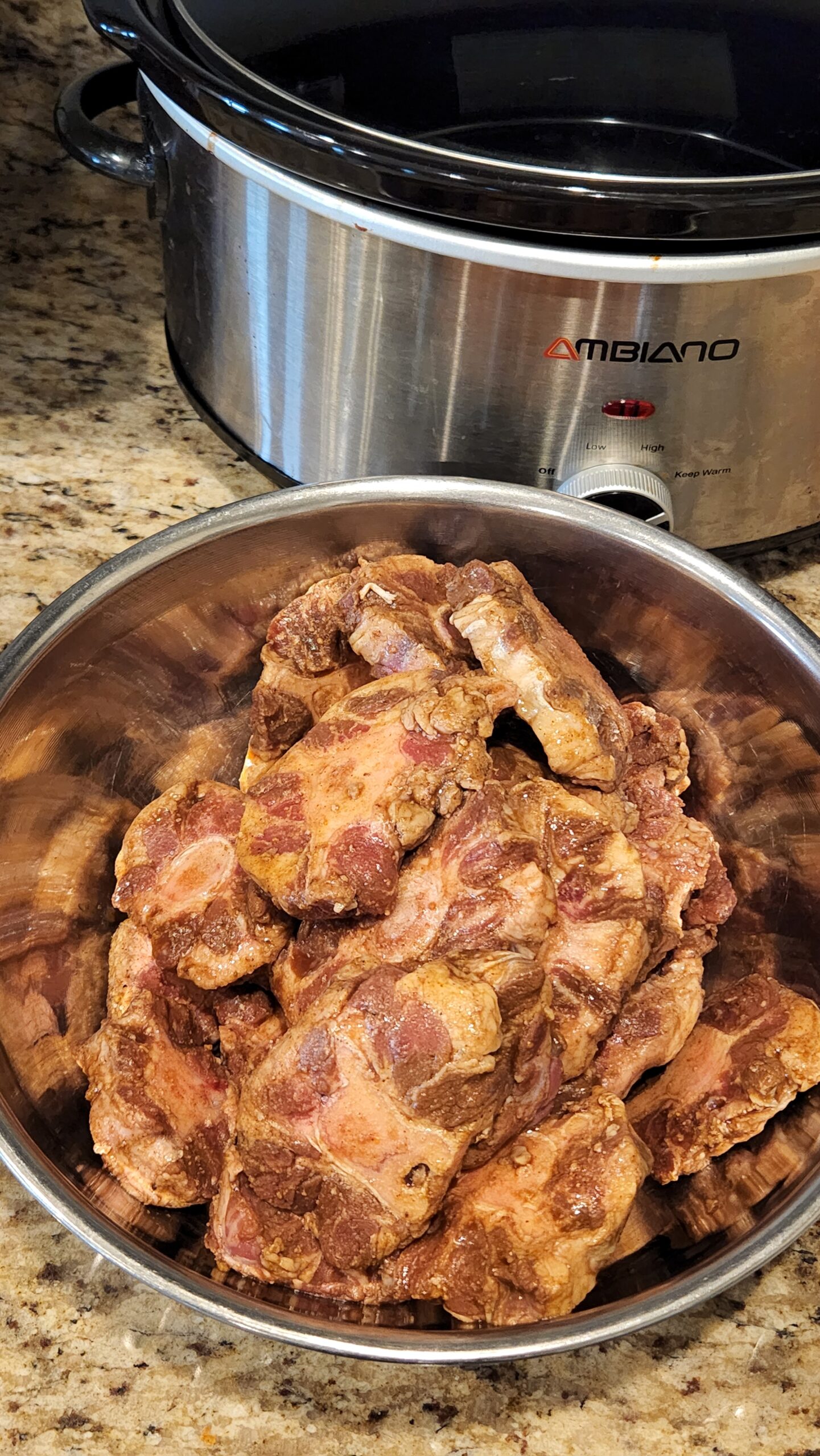 I did however, marinate the oxtails overnight using Margaritaville Calypso Rub and putting them in a Ziploc Bag refrigerated overnight.