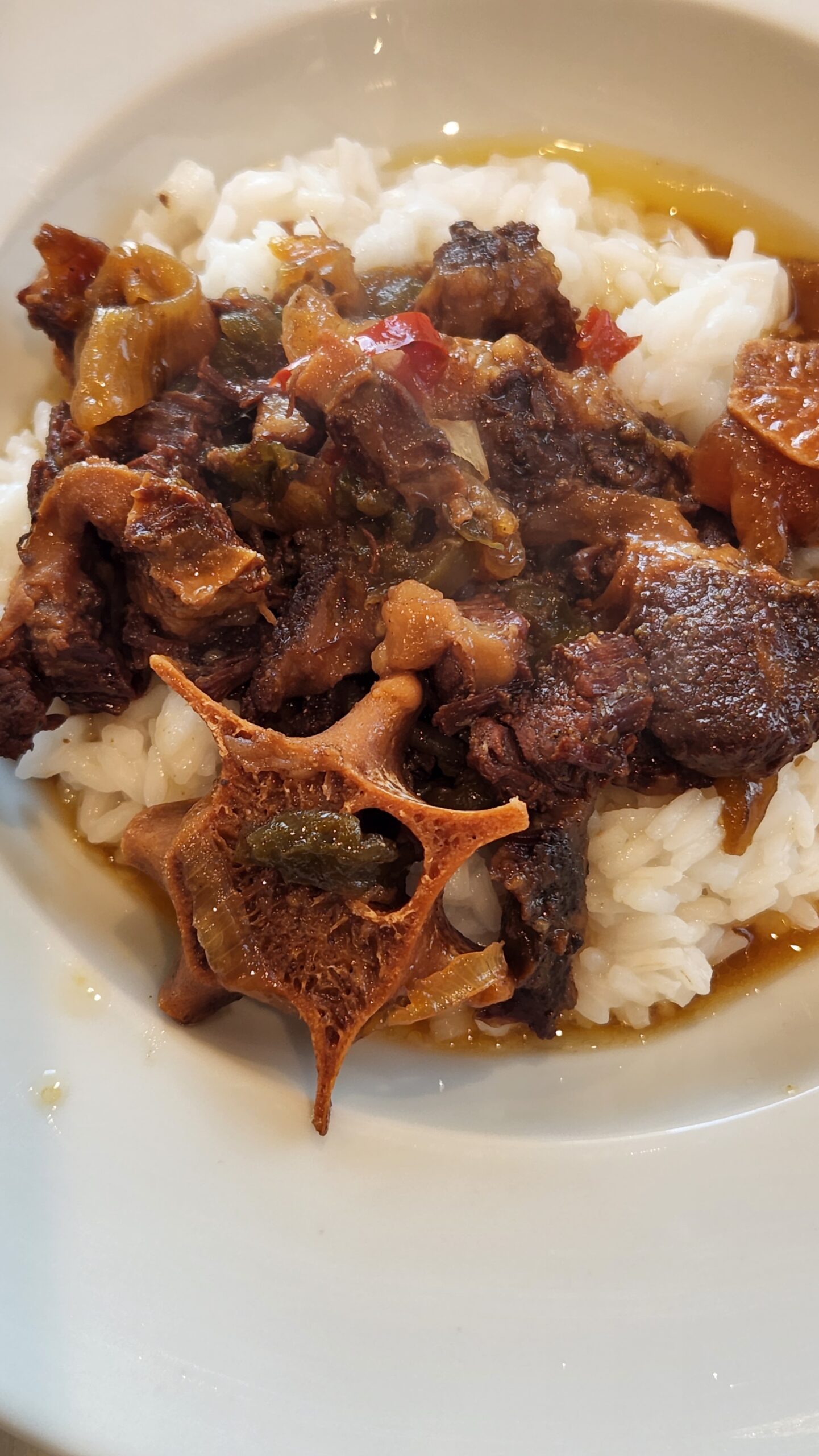 So obviously being a little gun shy, I decided not to add as many ingredients as the cost of Oxtails has risen so high that I needed to budget accordingly; also the sizes of the Oxtails are smaller and cut thinner so I didn’t want to overpower them by too many ingredients. Therefore, I only used 3 and served it over white Rice and it was AH-MAZING well worth the cost of the cut!