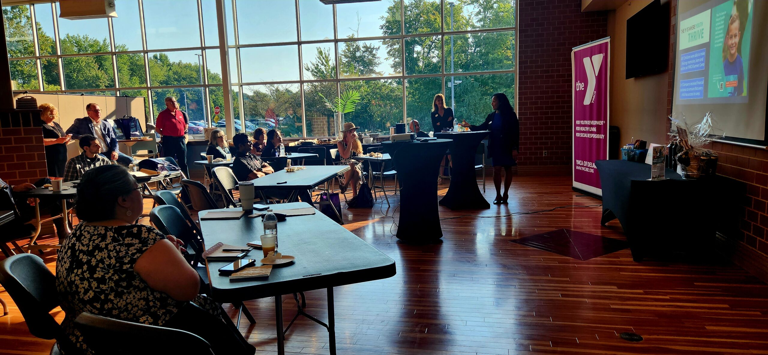 Yesterday I had the chance to check out the new YWCA in Bear-Glasgow and I was blown away! This state-of-the-art facility is all about giving back to the community and it’s definitely worth a visit if you’re in the area. I was there as an invite from Angela Henry, a member of the New Castle County Chamber of Commerce and CEO of MyFloorGuySupply and there were plenty of other members present as well. We were treated to a delicious breakfast spread of coffee, juice, bagels, donuts, biscuits and gravy, fruit and breakfast bars- it was a great way to start the day!